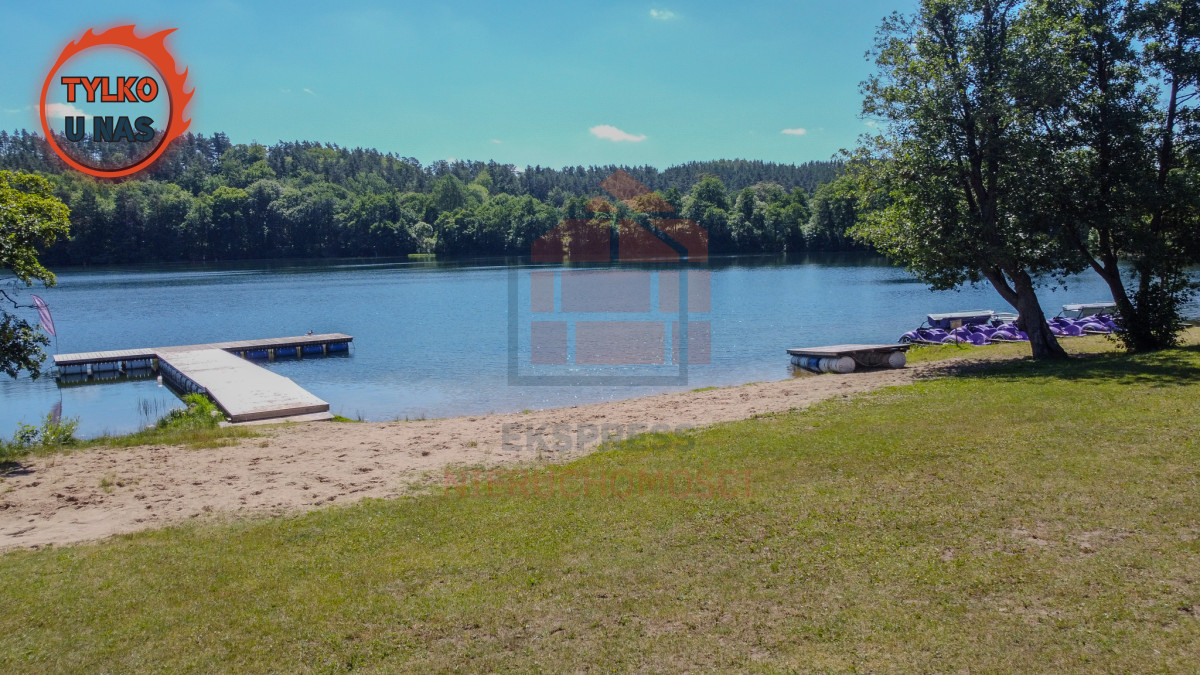 Do działki przynależą udziały do działki wspólnej nad jeziorem.
